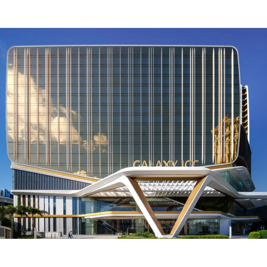 Painéis individuais de alumínio de formato irregular suportam processamento complexo de superfícies curvas, incluindo superfícies de curva simples e curva dupla, permitindo a criação de fachadas de edifícios visualmente impressionantes. Eles também podem ser personalizados para paredes cortinas internas de formato irregular, adaptando-se a lobbies com tetos altos, designs de átrios, halls de elevadores e outros espaços internos, equilibrando funcionalidade arquitetônica com design estético e quebrando as limitações das paredes cortinas planas tradicionais.